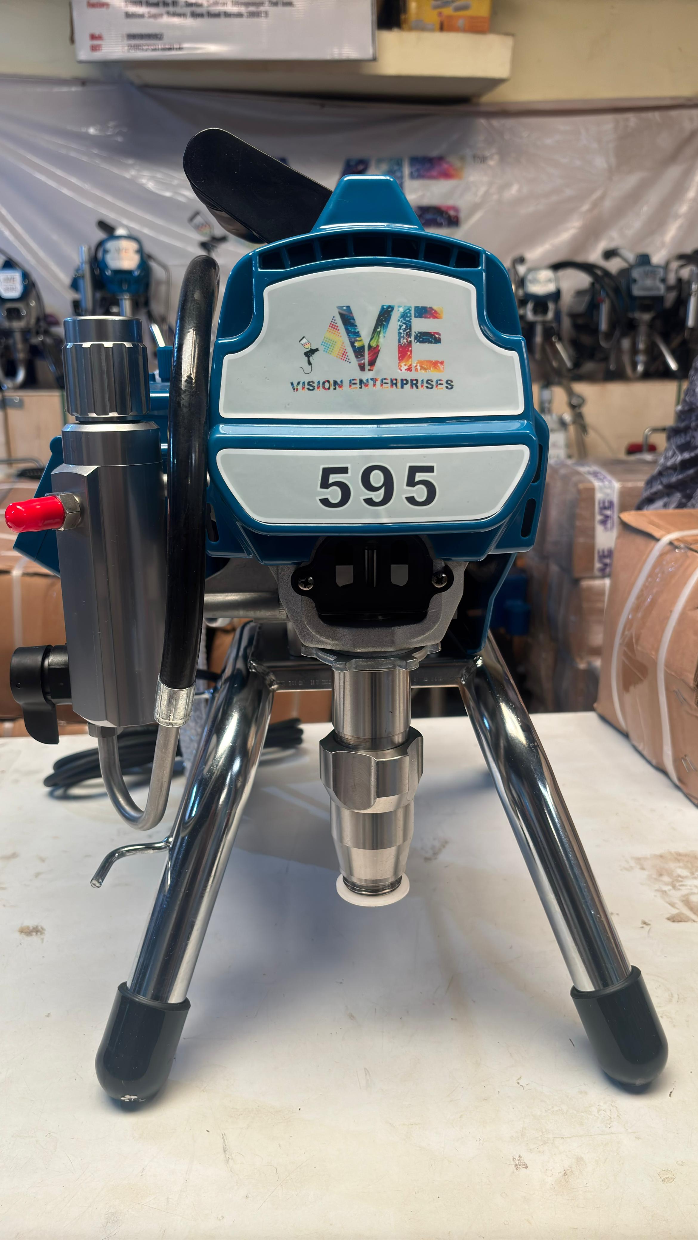 Automation Grade: Semi-Automatic Brand: Vision Model Name/Number: VE 595 Usage/Application: Water Base Material: MS Voltage: 220V Finish: Color Coated Usage/Applications: Oil base paints, Distemper, Emulsion.